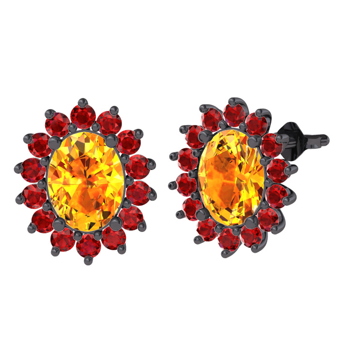 Sitrin ve garnet 925 ayar siyah rodyum kaplama gümüş küpe