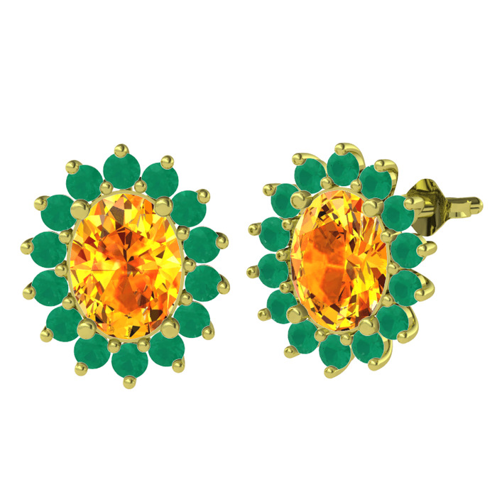 Sitrin ve kök zümrüt 18 ayar altın küpe