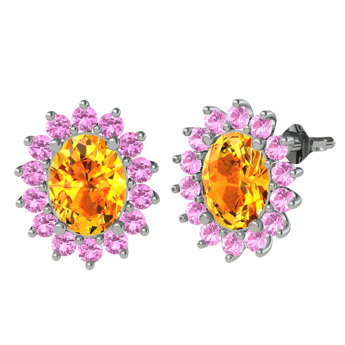 Sitrin ve pembe kuvars 925 ayar gümüş küpe
