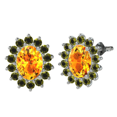 Sitrin ve peridot 18 ayar beyaz altın küpe