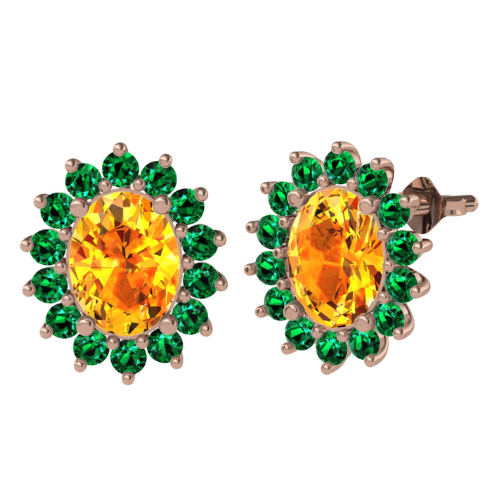 Sitrin ve yeşil kuvars 8 ayar rose altın küpe