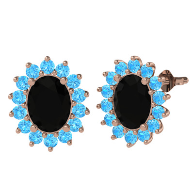 Siyah zirkon ve akuamarin 925 ayar rose altın kaplama gümüş küpe