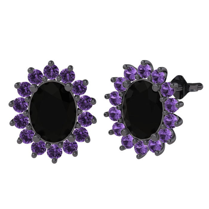 Siyah zirkon ve ametist 925 ayar siyah rodyum kaplama gümüş küpe