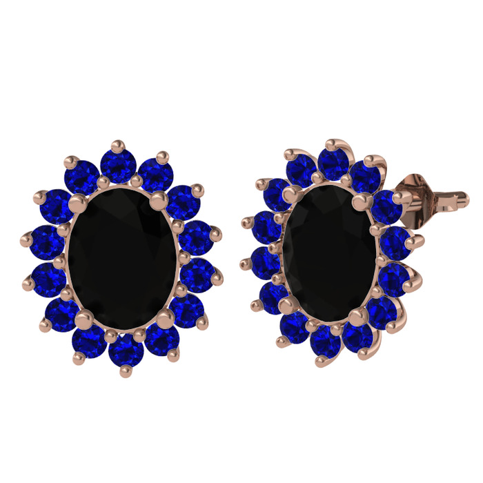 Siyah zirkon ve lab safir 925 ayar rose altın kaplama gümüş küpe