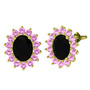 Siyah zirkon ve pembe kuvars 8 ayar altın küpe