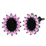 Siyah zirkon ve pembe kuvars 925 ayar siyah rodyum kaplama gümüş küpe