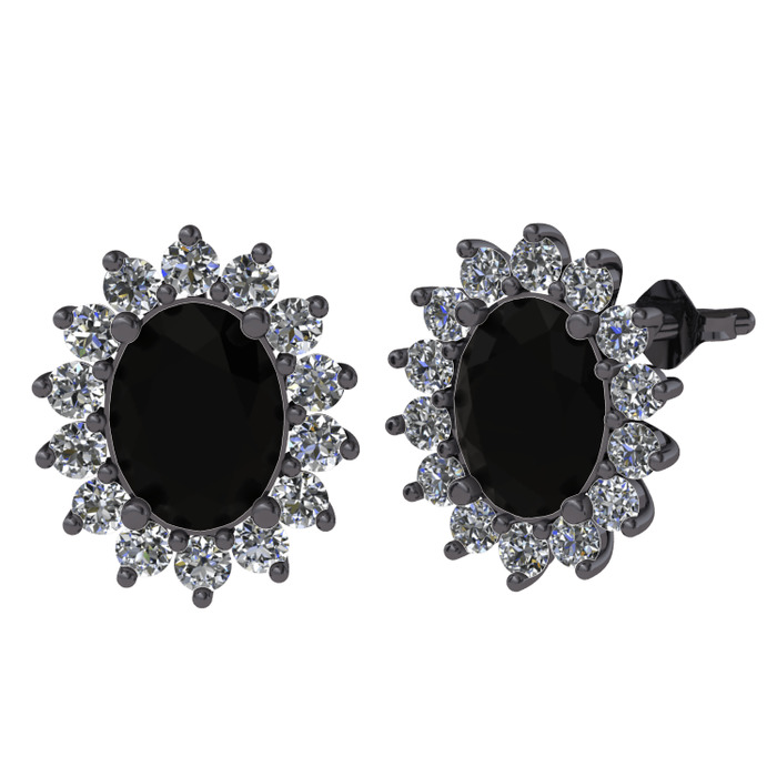 Siyah zirkon ve pırlanta 925 ayar siyah rodyum kaplama gümüş küpe (1.008 karat)