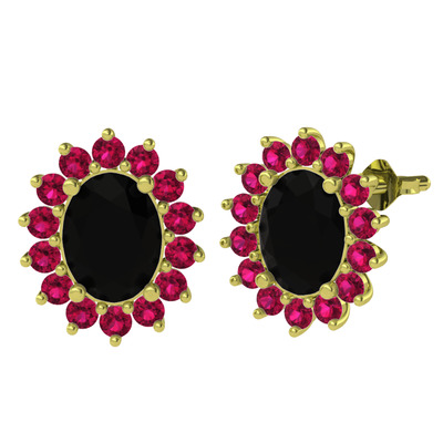 Siyah zirkon ve rodolit garnet 925 ayar altın kaplama gümüş küpe