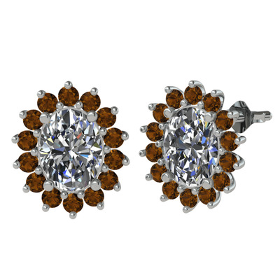Swarovski ve dumanlı kuvars 14 ayar beyaz altın küpe