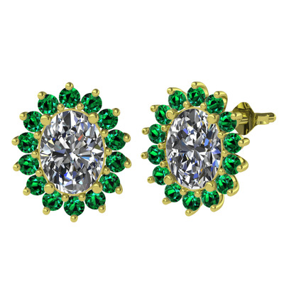 Swarovski ve yeşil kuvars 14 ayar altın küpe
