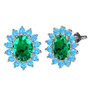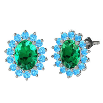 Yeşil kuvars ve akuamarin 8 ayar beyaz altın küpe