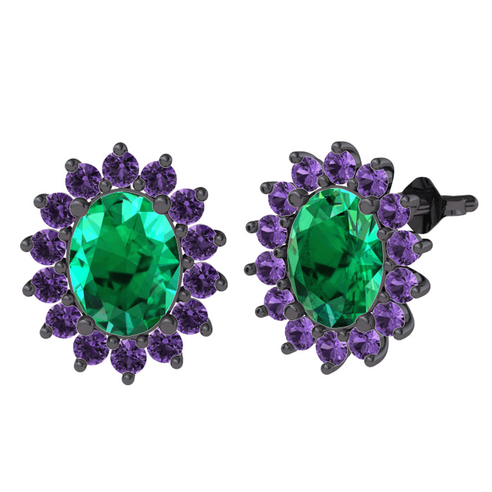 Yeşil kuvars ve ametist 925 ayar siyah rodyum kaplama gümüş küpe