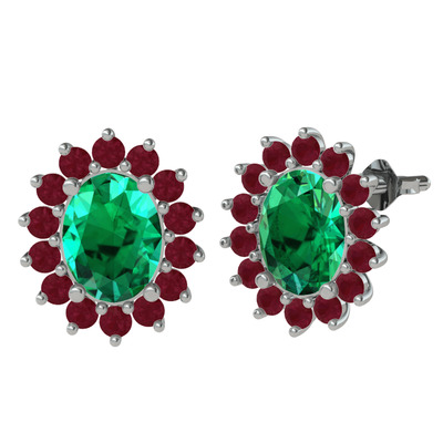 Yeşil kuvars ve kök yakut 18 ayar beyaz altın küpe