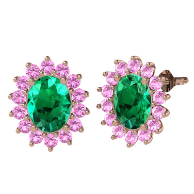 Yeşil kuvars ve pembe kuvars 18 ayar rose altın küpe