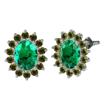 Yeşil kuvars ve peridot 8 ayar beyaz altın küpe