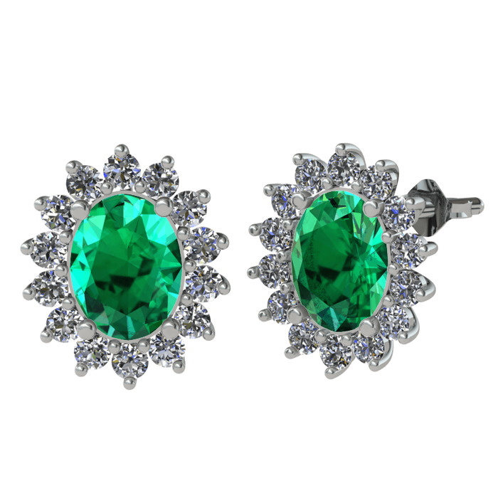 Yeşil kuvars ve pırlanta 18 ayar beyaz altın küpe (1.008 karat)