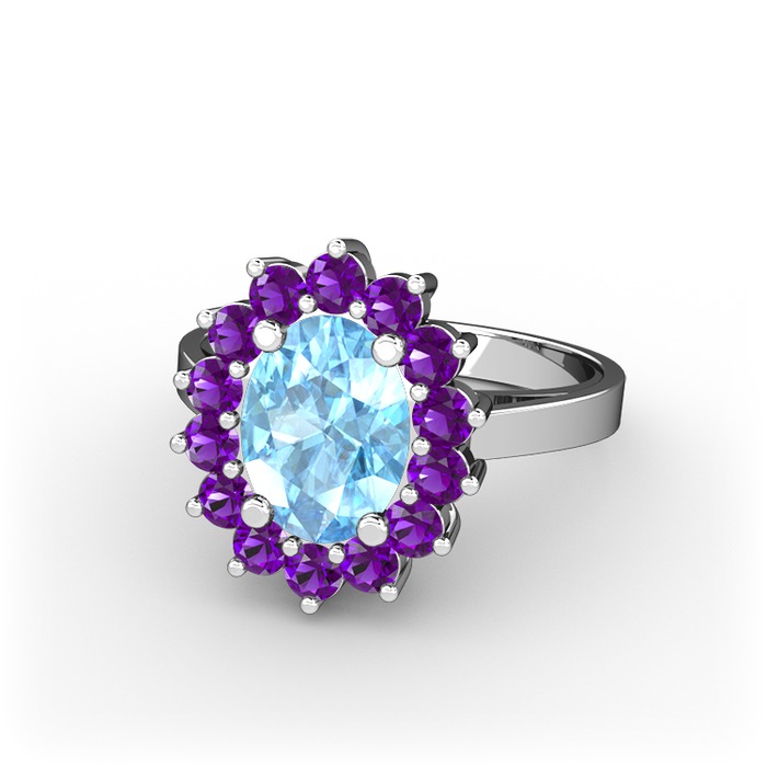 Akuamarin ve ametist 18 ayar beyaz altın yüzük