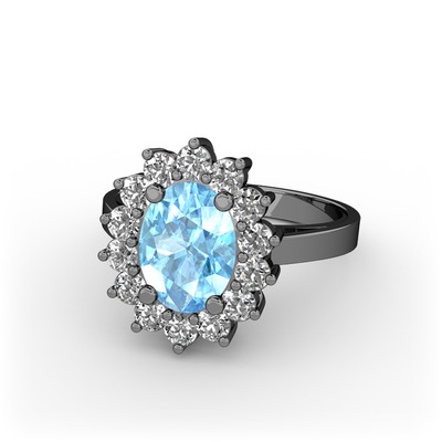Akuamarin ve beyaz zirkon 925 ayar siyah rodyum kaplama gümüş yüzük