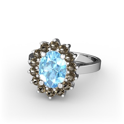 Akuamarin ve dumanlı kuvars 925 ayar gümüş yüzük
