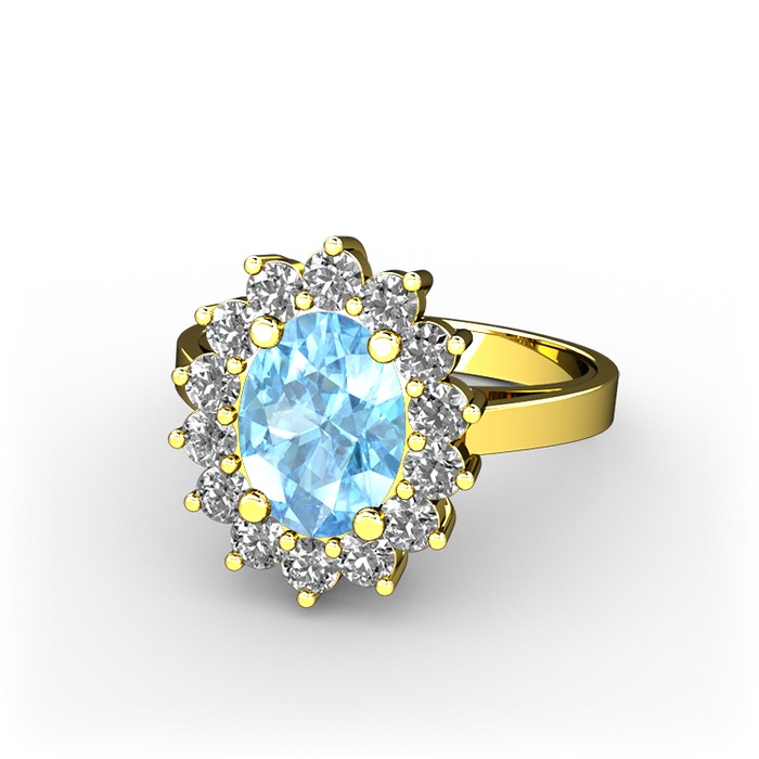 Akuamarin ve pırlanta 18 ayar altın yüzük (0.504 karat)