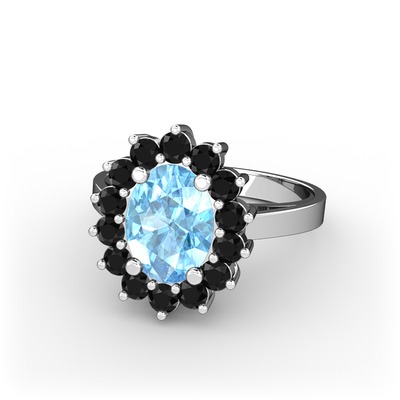 Akuamarin ve siyah zirkon 925 ayar gümüş yüzük