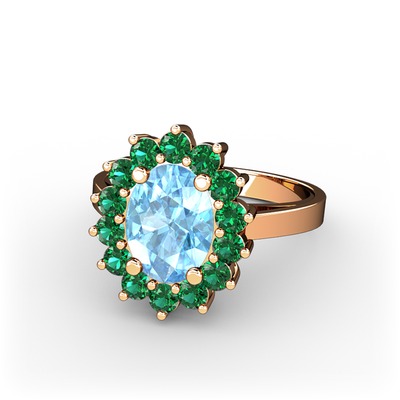 Akuamarin ve yeşil kuvars 18 ayar rose altın yüzük