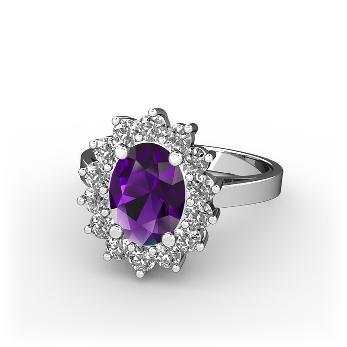 Ametist ve beyaz zirkon 925 ayar gümüş yüzük