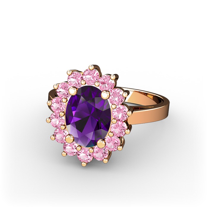Ametist ve pembe kuvars 14 ayar rose altın yüzük