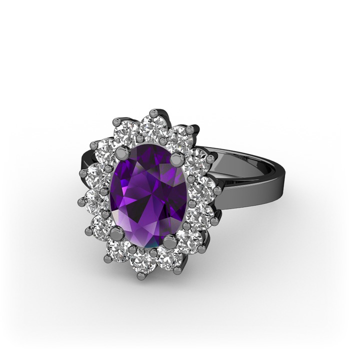 Ametist ve pırlanta 925 ayar siyah rodyum kaplama gümüş yüzük (0.504 karat)