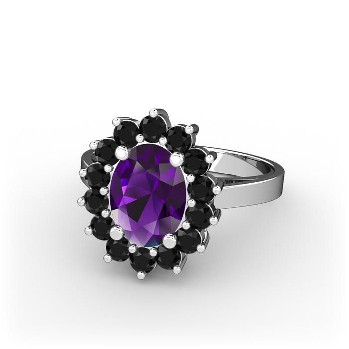 Ametist ve siyah zirkon 925 ayar gümüş yüzük