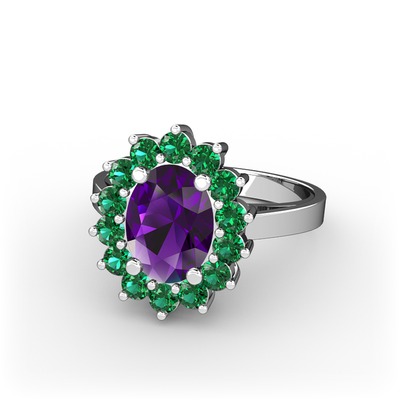 Ametist ve yeşil kuvars 8 ayar beyaz altın yüzük