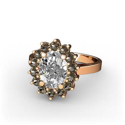 Beyaz zirkon ve dumanlı kuvars 14 ayar rose altın yüzük