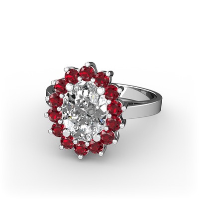 Beyaz zirkon ve garnet 925 ayar gümüş yüzük