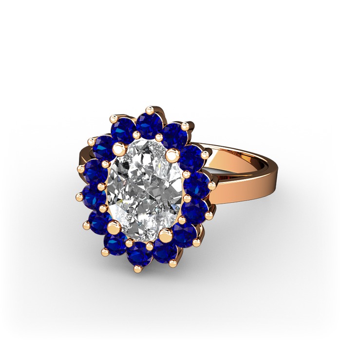 Beyaz zirkon ve lab safir 18 ayar rose altın yüzük