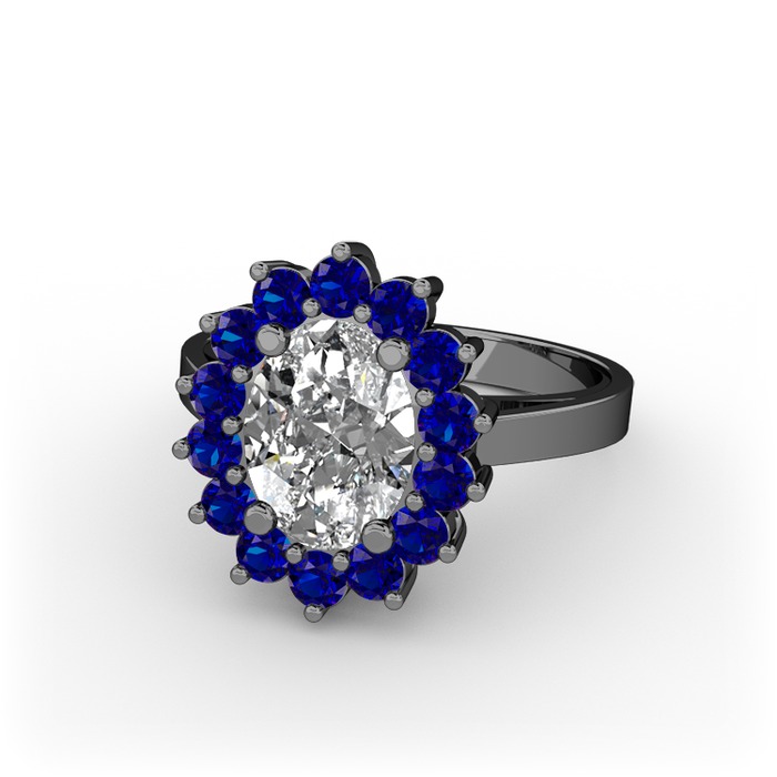 Beyaz zirkon ve lab safir 925 ayar siyah rodyum kaplama gümüş yüzük