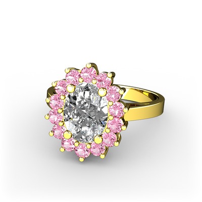 Beyaz zirkon ve pembe kuvars 14 ayar altın yüzük