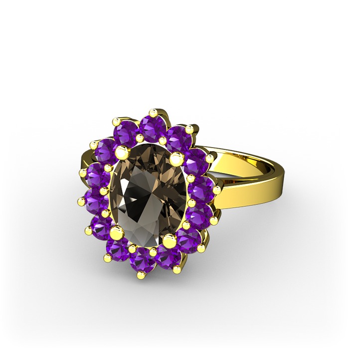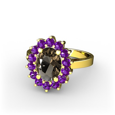 Dumanlı kuvars ve ametist 18 ayar altın yüzük