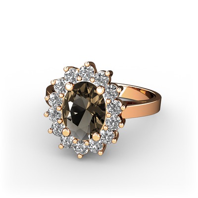 Dumanlı kuvars ve beyaz zirkon 18 ayar rose altın yüzük