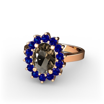 Dumanlı kuvars ve lab safir 18 ayar rose altın yüzük
