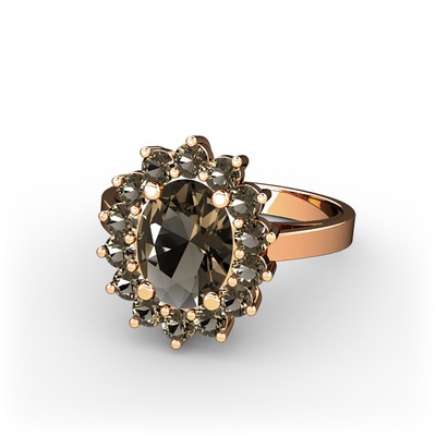 Dumanlı kuvars 925 ayar rose altın kaplama gümüş yüzük