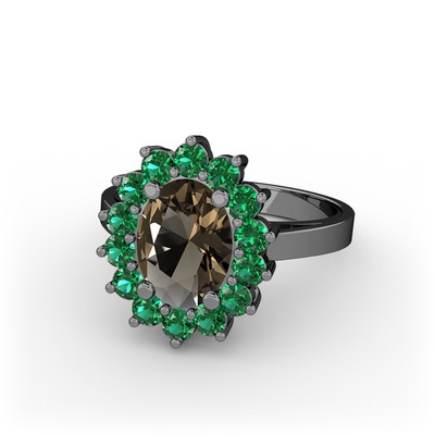 Dumanlı kuvars ve yeşil kuvars 925 ayar siyah rodyum kaplama gümüş yüzük
