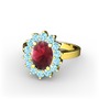 Kök yakut ve akuamarin 925 ayar altın kaplama gümüş yüzük