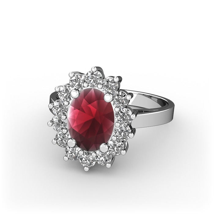Kök yakut ve beyaz zirkon 18 ayar beyaz altın yüzük