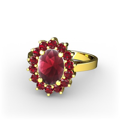 Kök yakut ve garnet 925 ayar altın kaplama gümüş yüzük