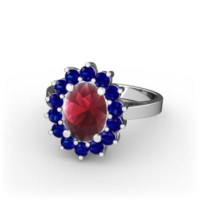 Kök yakut ve lab safir 14 ayar beyaz altın yüzük