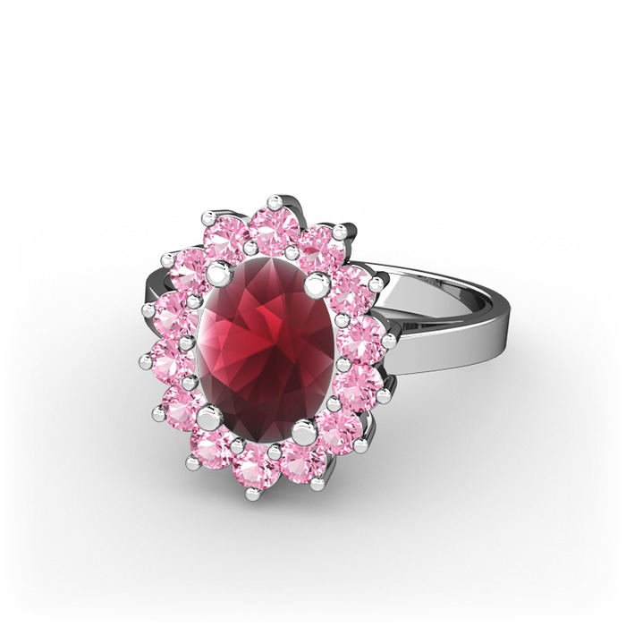 Kök yakut ve pembe kuvars 18 ayar beyaz altın yüzük
