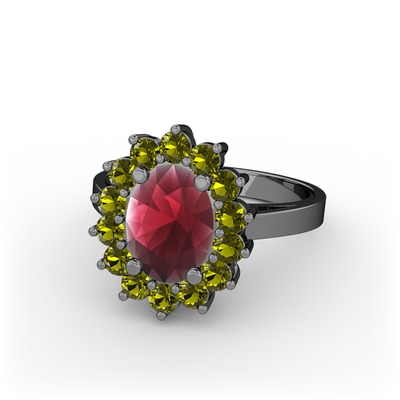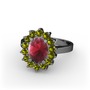 Kök yakut ve peridot 925 ayar siyah rodyum kaplama gümüş yüzük