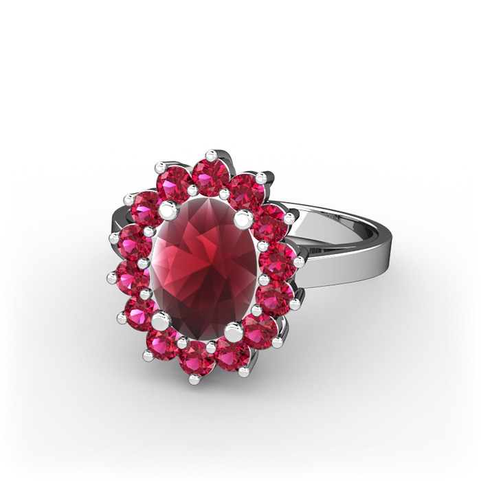 Kök yakut ve rodolit garnet 8 ayar beyaz altın yüzük
