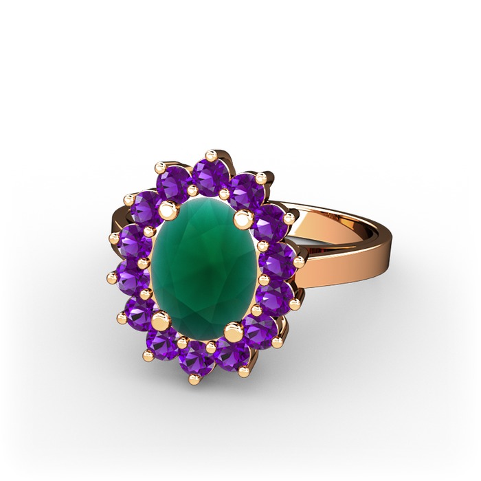 Kök zümrüt ve ametist 18 ayar rose altın yüzük