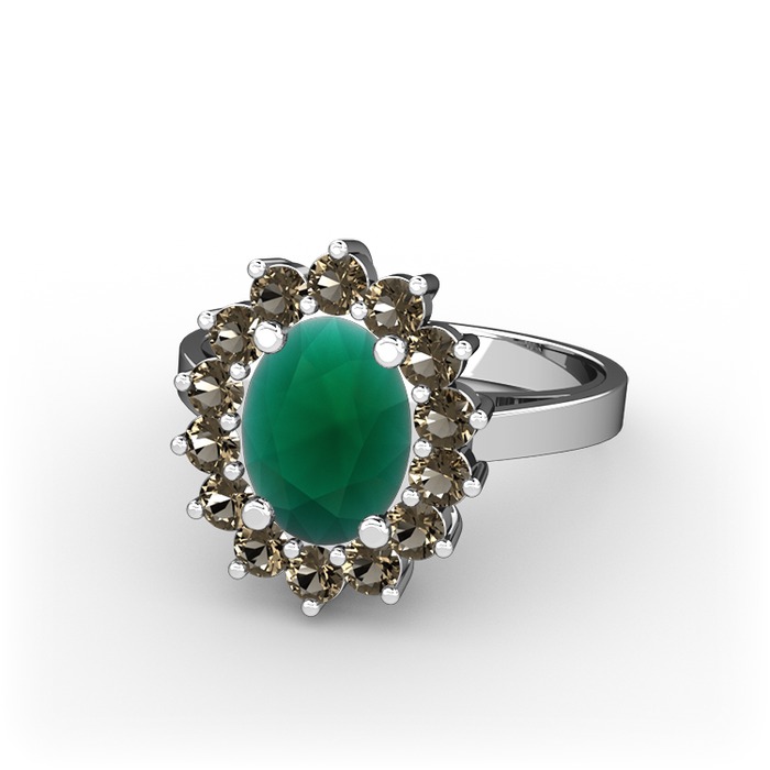 Kök zümrüt ve dumanlı kuvars 8 ayar beyaz altın yüzük